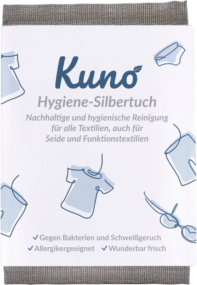 The silver cloth is an innovative and plastic-free alternative to laundry sanitiser. It is made of viscose with 580 m of silver yarn woven into the fabric. Thanks to the antibacterial properties of silver, germs and unpleasant odours are eliminated. Furthermore, the cloth is durable and lasts up to one year or 150 washes.