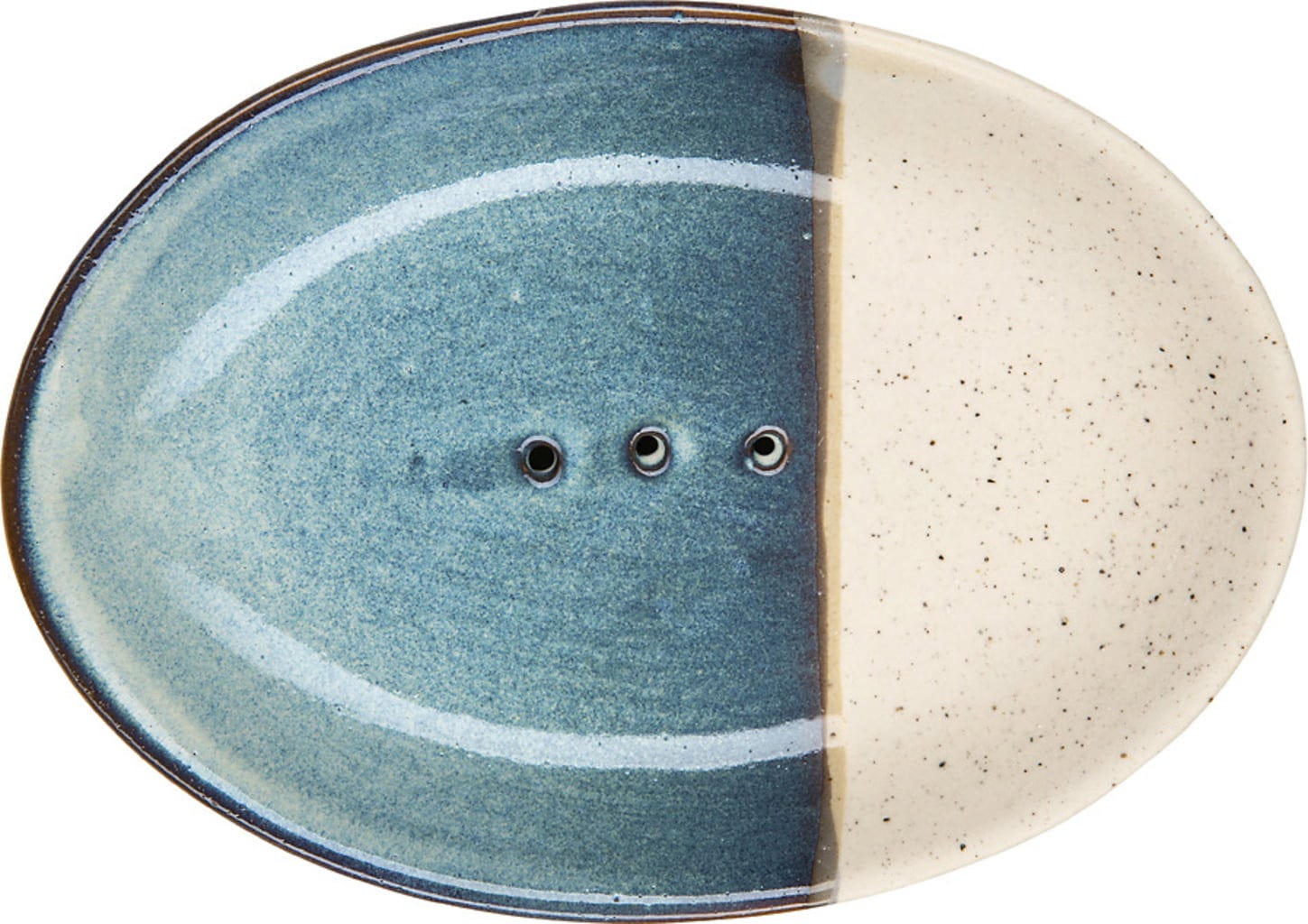 This high-quality soap dish made of glazed stoneware is a decorative addition to every sink. The elegant minimalist oval shape in two colours complements any style of decor. Plus it is practical too - three discreet drainage holes allow water to drain away so your soap bar doesn't stay wet and get soft and soggy.